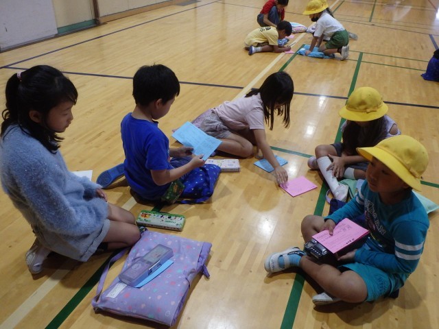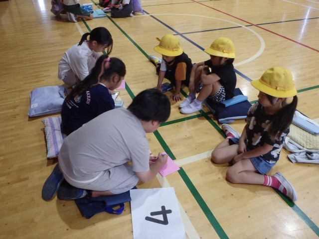 来週に行われる遠足の事前学習の様子です。まず当日の詳しい動き方や一緒に行く先生方の紹介等のお話を聞きました。その後、班ごとに分かれて一緒に行くメンバーの名前を2年生がしおりに書いてくれました。お弁当のおかずは、何を頼もうかな。おやつは何を買っていこうかな。既に子供たちの心は遠足モードです。当日、お天気に恵まれますように・・・