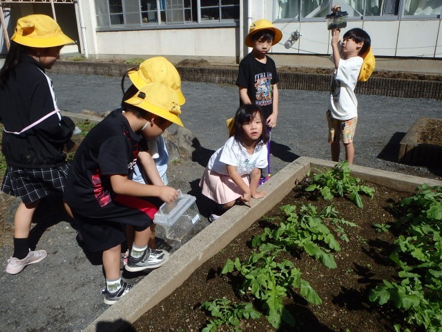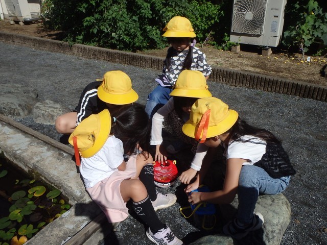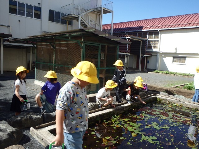 久しぶりに気温も高く気持ちのいい日でした。校庭で秋をたくさん感じながら虫を探しました。夢中になり校庭や畑を走り回っていた子供たちです。池の中にいた魚も見つけることができました。大満足で学習を終えることができた1年生です。