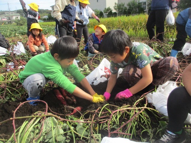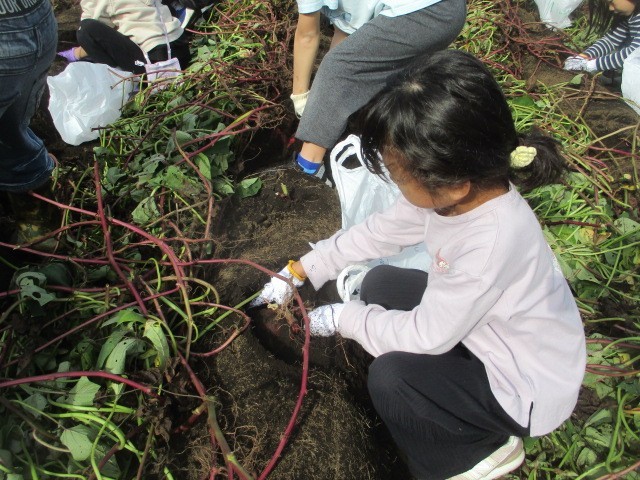 よく話を聞きながら、たくさんのさつまいもを掘ることができました。今年のさつまいもは一つ一つが大きく、リュックサックいっぱいのさつまいもを背負いながら頑張って学校に帰りました。