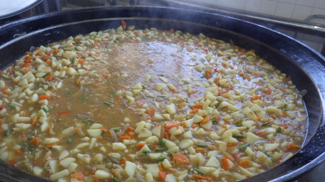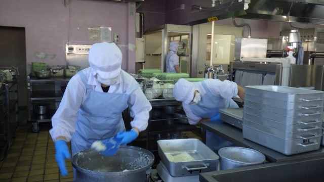 給食で使用しているこまつなは、ほぼ1年間分八王子で収穫されたものを使っています。こまつなは、カルシウム、鉄も多く含んでいる野菜です。今日はコーンともやし、鶏肉と一緒にソテーにしました。