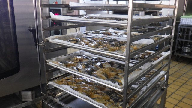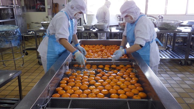 今日の果物はみかんでした。流水で1つ1つ3回洗浄後、クラスごとに数えて子どもたちへ提供しています。今日のみかんは甘くておいしかったからか、川口小学校全体で2個しか残菜がありませんでした。