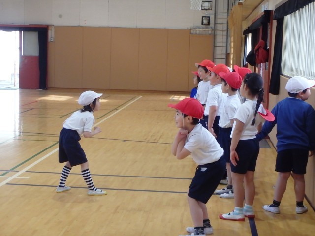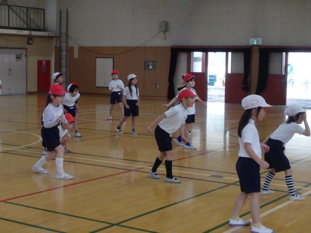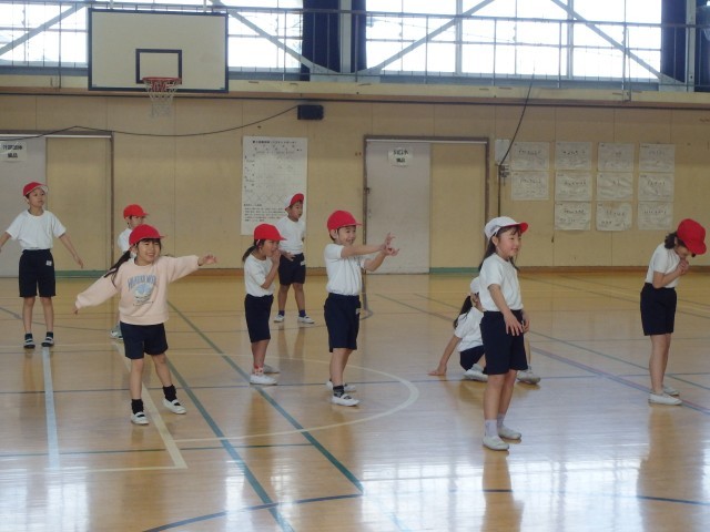 1年生の体育館体育の様子です。この日は、長い距離を走る学習の後、だるまさんが転んだをしてリフレッシュしました。この一年間でたくさんできることができるようになった1年生。疲れても頑張れることが増えてきました。最後まで走りきり、いい顔を見せてくれた子供がたくさんいました。遊びのルールもしっかり守れるようになってきました。