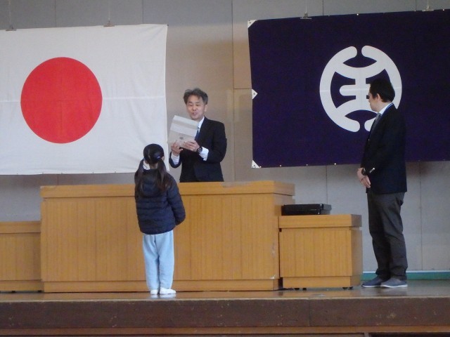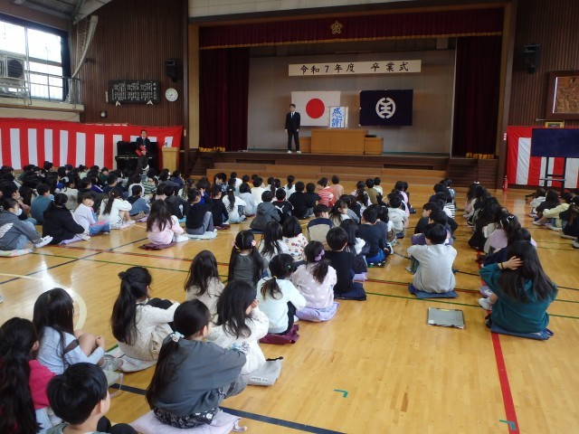 1時間目の修了式。最後の最後まできちんと並んで話を聞くことができた1年生です。