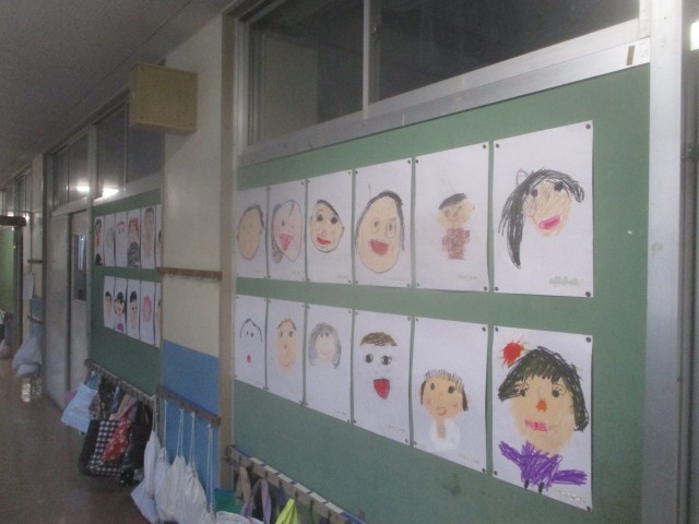登校2日目。図工の時間に、「はじめましてよろしくね」ということでクレヨンで自分の顔を描きました。