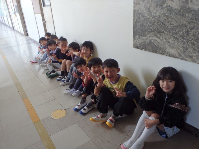 今日、一年生を迎える会がありました。朝からわくわくどきどきの一年生。一緒に入場する6年生を待っている間もにこにこでした。いよいよ花のアーチを通って
