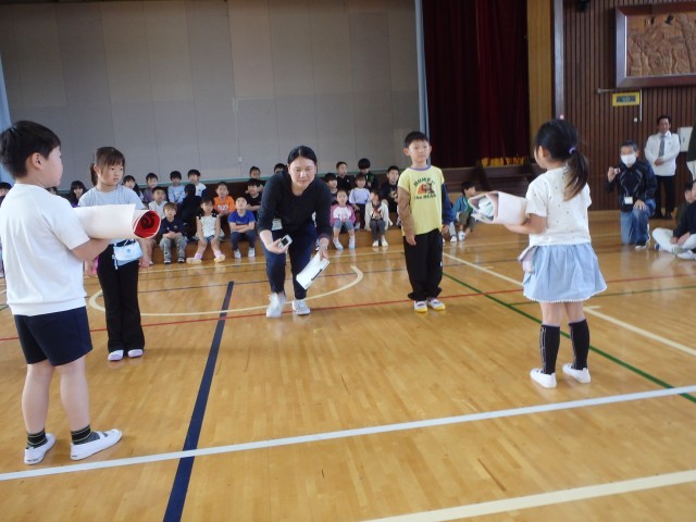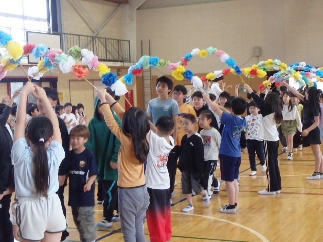 入場です。2年生からは、心のこもったメッセージをもらいました。一年生にとって、とても楽しい会となりました。