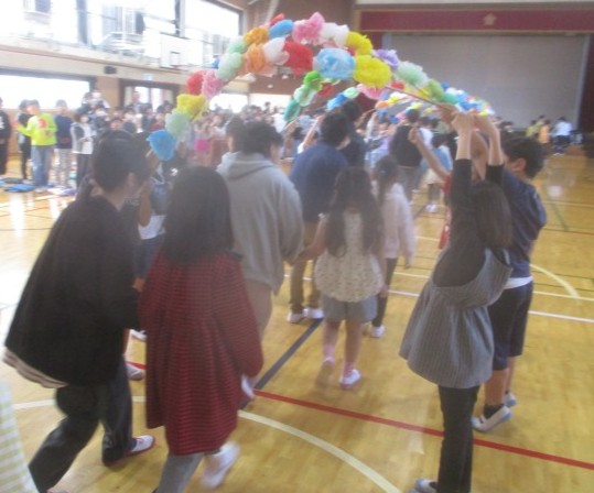 今日は1年生を迎える会がありました。入場は6年生、退場は5年生に手をつないでもらってうれしそうな子どもたち。