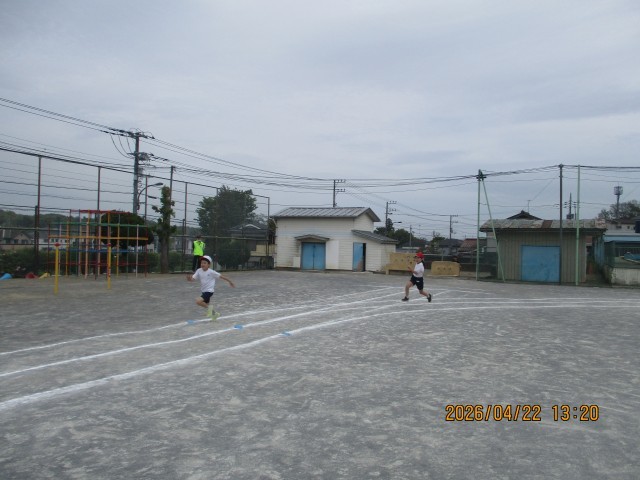 運動会に向けて、学年で80m走の計測を行いました。前回計った50m走より長い距離でしたが、子ども達はスタートからゴールまで全力で元気いっぱい走り抜きました。