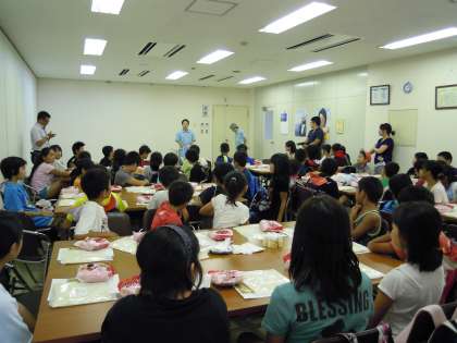 午後の見学ということで,昼食を済ませた子供たちに「新米」と「古米」(古米といっても平成24年産です)の炊きたてのご飯を試食させていただきました。