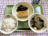 給食のサラダは、生野菜がだせないため、茹でサラダです。