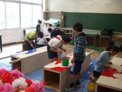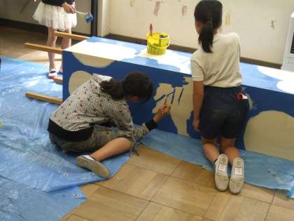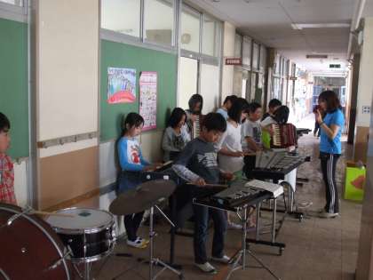 音楽係,装飾係の様子です。音楽係は校歌や運動会の歌などの伴奏を担当しています。