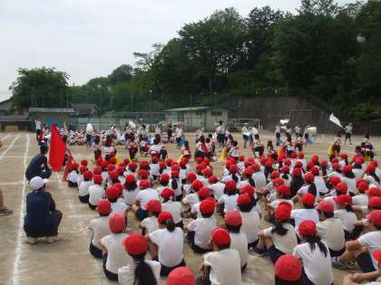 今日の全校練習は応援と大玉送りの練習です。