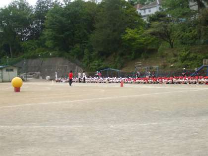 練習の締めくくりは,まとめのお話と次回の予告があります。体育座りで話を聞く姿勢も,シャンとしています。