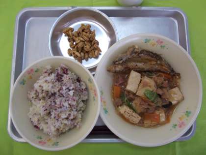彩りご飯には、精白米・もち米・きび・ゆかり粉・ごま