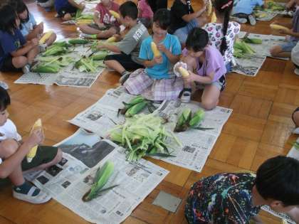 八王子産とうもろこしを3年生が一生懸命皮むきをしてくれました。子供たちは、新鮮なので甘みがあったので、とても喜んで食べていました。