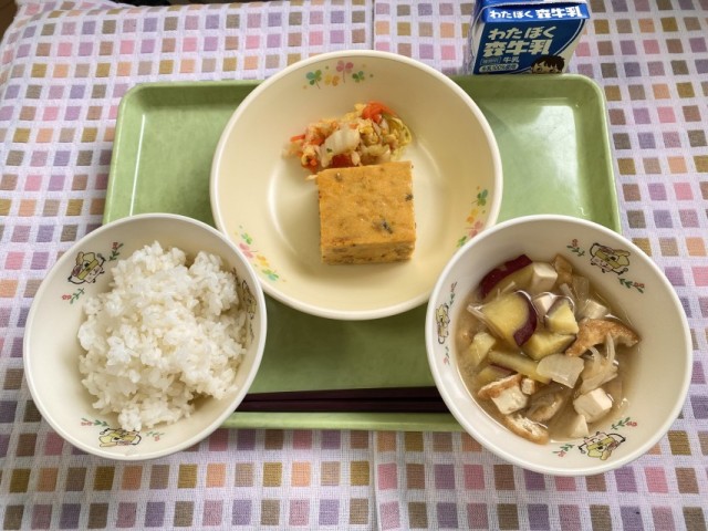 3月2日(月)ごはんぎせい豆腐浅漬けさつま芋のみそ汁牛乳 ぎせい豆腐は、豆腐をく...