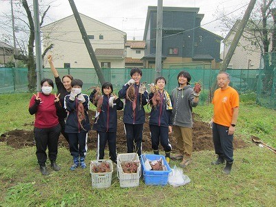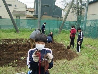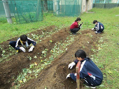 10月7日(火)、4組の畑でさつまいもを収穫しました。