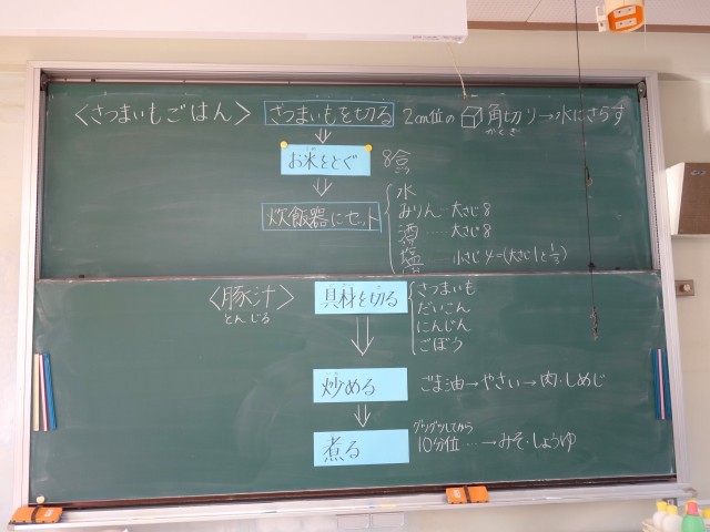 4組の生徒たちが丹精込めて育てた🍠さつま芋を使って、炊き込みご飯と豚汁を作りました。