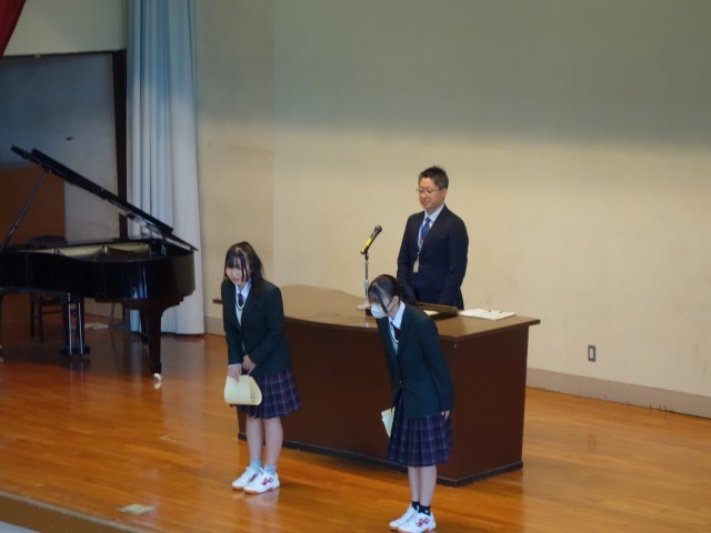 12月25日(木)、2学期終業式を実施しました。本日をもって、2学期が終了となります。式では、まず校長講話で、「学び」と「人間関係」をテーマに話がありました。人は失敗や間違いを経験し、それを振り返って次に生かすことで理解を深め、成長していきます。このことは勉強だけでなく、人との関わりにも当てはまります。学校は失敗してもやり直せる場所であり、正直に非を認め、改善しようとする姿勢が人を成長させます。経験を糧に、以前よりも素敵な自分へと成長していこうというメッセージが、生徒たちに向けて伝えられました。