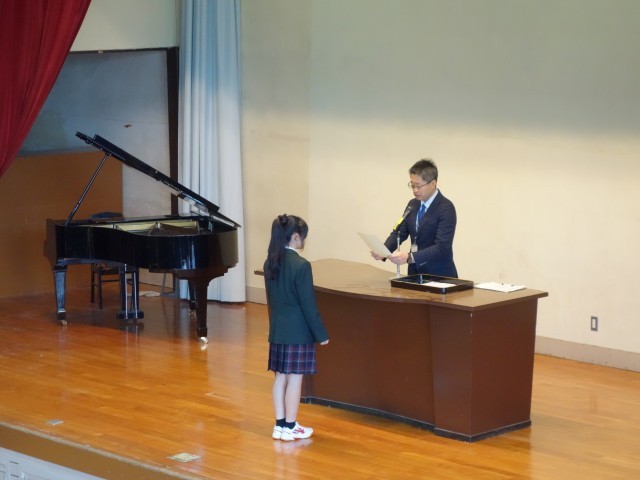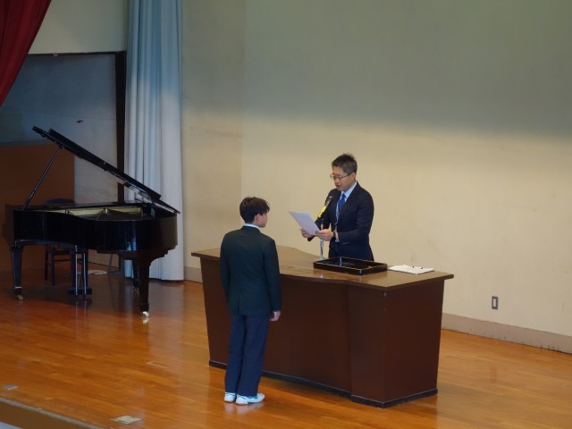 講話の後には、税の標語、プログラミングコンテスト、科学コンクール、柔道など、さまざまな分野で優秀な成績を収めた生徒の表彰が行われました。日々の学習や校外での挑戦を通して努力を重ねてきた生徒たちの活躍に、大きな拍手が送られました。