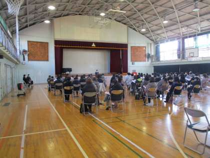 2月18日(金)に体育館で新入生保護者対象学校説明会を行いました。説明会に足をお運びいただいた保護者の皆様におかれましては、お忙しい中ありがとうございました。