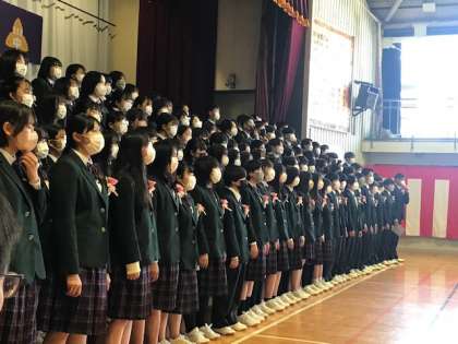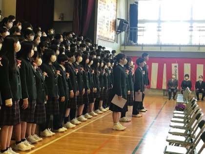 3年間を振り返っての感謝の想いや、合唱コンクールで周囲を圧倒した歌声を、最後に再び会場内に響かせてくれました。在校生は、代表生徒のみの参加でしたが、3年生の姿は、後輩に確実に引き継がれることと思います。