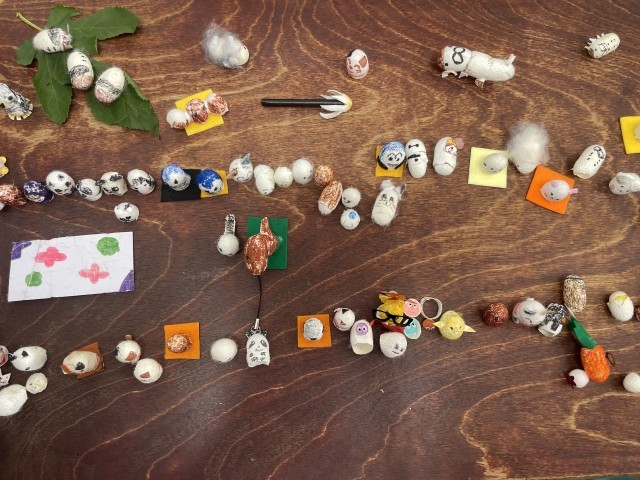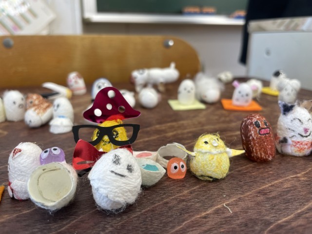 3年生では、まゆ人形づくりをしました。大切に育ててきたカイコ、白いまゆになったので,糸取りをしたり、人形にしたり、様々体験しました。