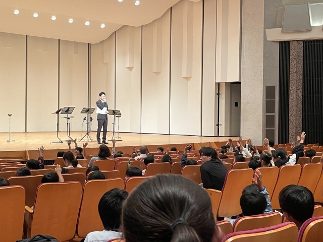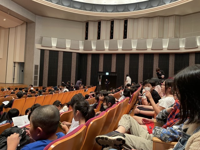 今日の午後、3、4年生は南大沢文化会館の避難訓練コンサートに参加しました。コンサートの内容は、サックス四重奏のカルテットバンブーさんの演奏です。