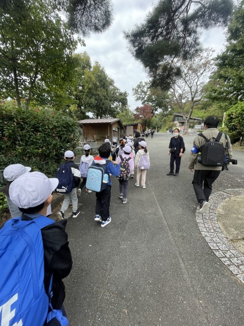今日は,遠足です。お天気は曇りですが、涼しくて,ちょうど良いです。多摩動物公園内はたいへんな賑わいです。ほとんどが小学校1年生、2年生です。上柚木小も,早速班行動が始まりました。