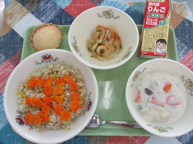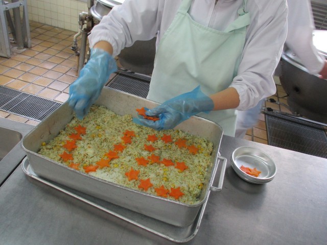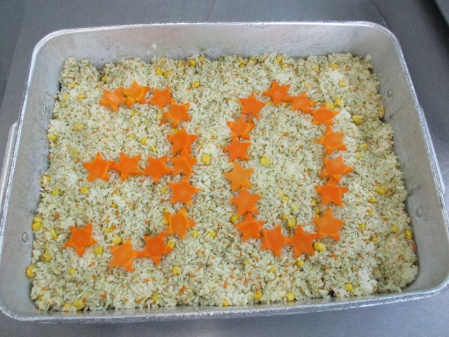教室では児童の皆さんがピラフをみて喜んでくれました。