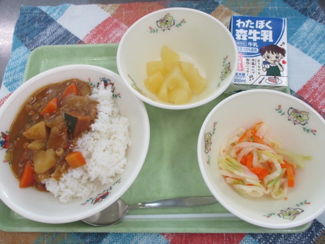 かぼちゃが煮崩れないように一度オーブンで焼いてからカレーに入れました。