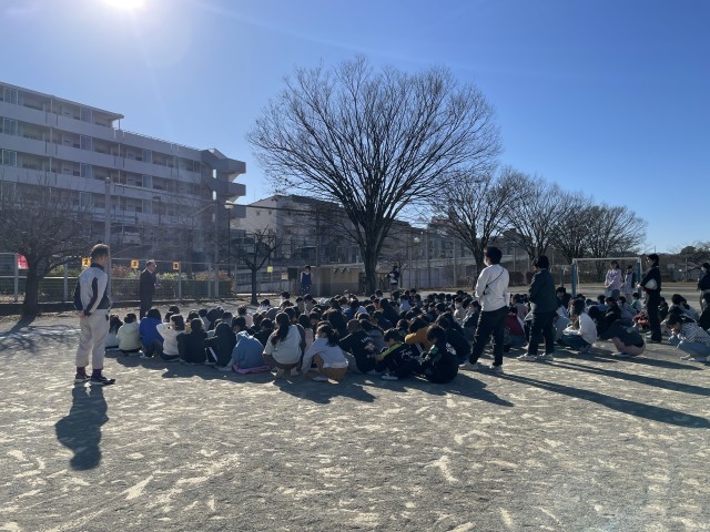 北風がビューッと吹き抜ける校庭で、避難訓練がありました。想定は、掃除の時間中の地震です。皆、訓練の放送をよくきいて、素早く行動できたと思います。いざというときのために、備えておくことは大切です。心構えも。