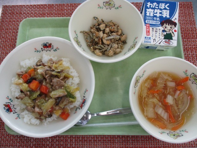 中華丼に60g、くずきりスープには40g、計100gの野菜が入っています。