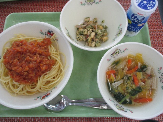 今日は上柚木小学校で大人気の給食スパゲティミートソースです。