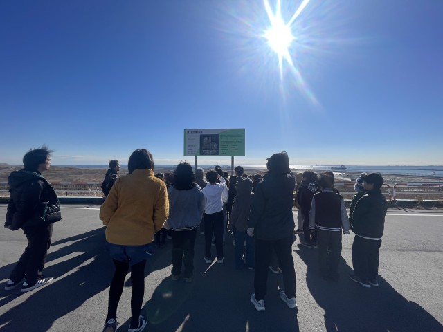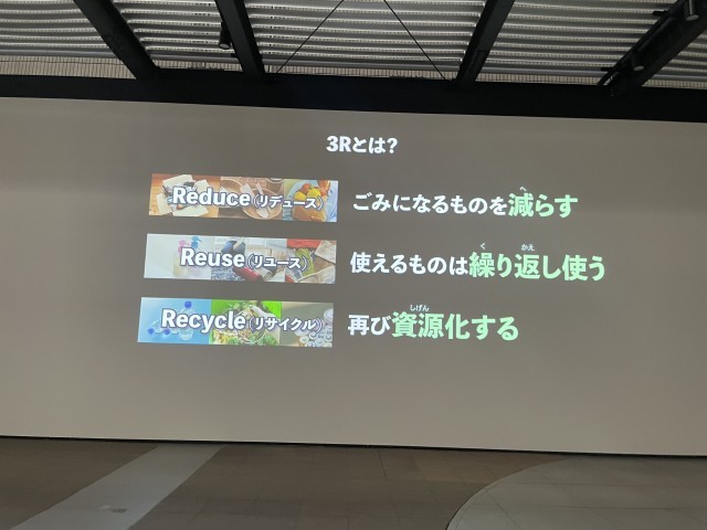 埋め立て処分場の中は、バスに乗って見学をしました。見晴し台は、埋め立て処分場の1番先にあります。ここから見える新しい埋め立てエリアも、あと50年でいっぱいになるそうです。ごみをへらさなければなりせん。そのために大切なことは,三つのR,と教えていただきました。3枚目の写真です。