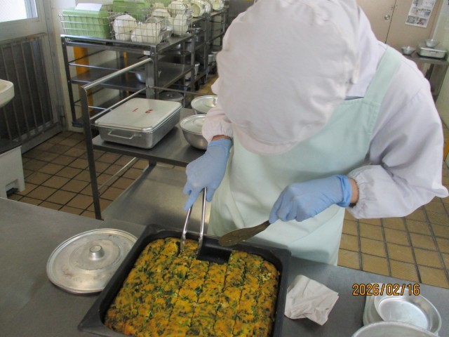 カットした後はそれぞれのクラスのバットやボウルに移します。崩れないように移すのが、とても難しいです。
