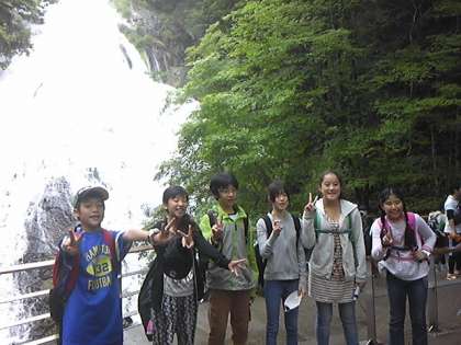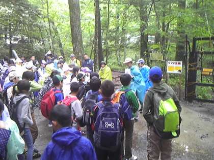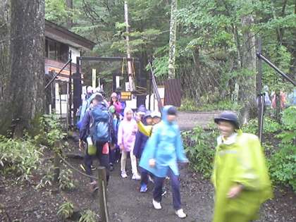 湯滝からハイキングスタートです。小雨ですが頑張ります。