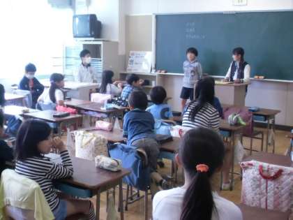 今日は、昨年度から始まった1年生〜6年生が入った「たてわり班」の活動、「ゆずっこたてわり集会」の第1回目です。本来は、水曜日の「ゆずっこタイム」を利用して、行われます。初めてだったので、自己紹介とこれからの集合場所を決めました。6年生が1年生を担当教室まで、送り迎えをしていました。