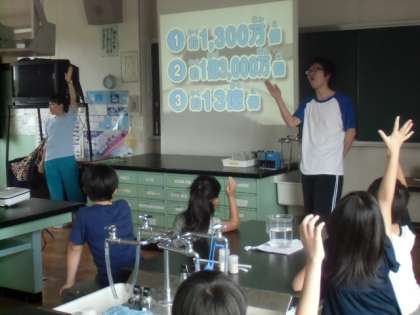 水道キャラバン(4年生) 6月20日 公開日 2016/06/20 更新日 2016/06/20 ゆうゆう記 今日は、「水」のお話。東京都の水道水ついて、詳しく聞いて、実験もしました。東京都の水道管を全てつなぎ合わせると地球を2/3周するらしい。 いいね(0)