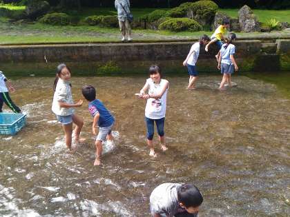 ますをつかみ取り。ぬるぬるしていて、なかなかてごわいです。