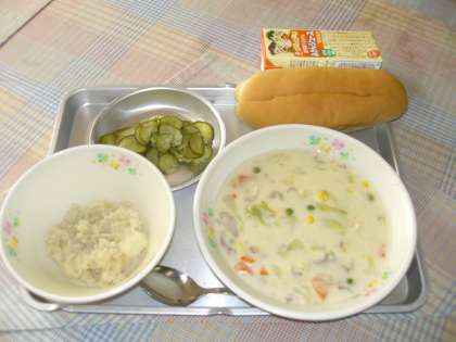 マッシュサンド クリームシチュー フレンチきゅうり オレンジジュース