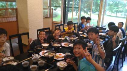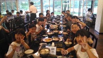 お腹すきました!いっぱい食べて、キャンプファイヤーだっー!