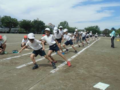 梅雨の晴れ間、午前中、全校一斉で体力テストを行いました。ソフトボール投げ、シャトルラン、反復横跳び、立ち幅跳び、上体起こし、長座体前屈を学級ごとのローテーションで回りました。5、6年生が1年生から4年生の測定のお手伝いをしました。体力テストボランティアとして朝早くから保護者の皆様にもお手伝いいただきました。暑い中、子供たちのためにお力添えありがとうございました。