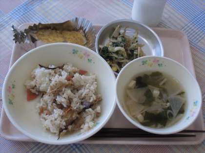 今日は、八王子市の市制記念日にちなんで、八王子市にゆかりのある献立でした。「かてめし」は、昔、お米が貴重な時代に、雑穀や野菜を入れて混ぜて炊くことで、お米が少なくても食べられるごはんでした。「かてめし」の「かて」は、混ぜるという意味です。