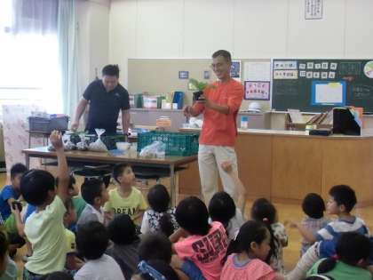 ソースを作りました。夕方の「夕焼けチャイム」の童謡「夕焼小焼」は、八王子市上恩方町出身の詩人 中村雨紅さんが作詞したものです。「桑の葉団子汁」は、八王子市では、織物が有名で絹糸を作るための蚕が食べる桑の木がたくさんありました。桑の葉を粉にしたものを混ぜて作ったお団子を味わいました。「野菜のおかかあえ」の小松菜は、八王子産の野菜です。 また、今日は3年生が、社会科の学習で、小比企町の中西農園さんがきて、農業について授業をしてくれました。野菜をおいしく作るための、土やたい肥のお話しや野菜の種も見せてもらいました。給食ででる野菜も残さず感謝して食べましょう。