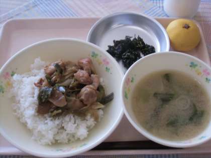 9月25日(水) 公開日 2019/09/25 更新日 2019/09/25 給食 ◆今日の献立◆ ・やきとり丼 ・わかめのにんにく炒め ・なめこ汁 ・牛乳 ・みかん 今日のわかめのにんにく炒めは人気のメニューです。みじん切りにしたにんにくをごま油で炒めて香りが出たら、わかめを加えて炒めて、しょうゆとごまで味付けします。簡単にできるのでご家庭でもお試しください。 いいね(0)