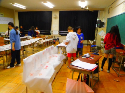 待ちに待っていたお化け屋敷。クオリティーを高くするために、たくさん話し合って決めました。当日、たくさんのお客さんが怖がってくれて、お店を開いたかいがありましたね。