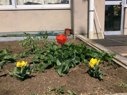 かだんをみてみると、チューリップがさいていました。