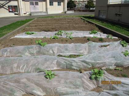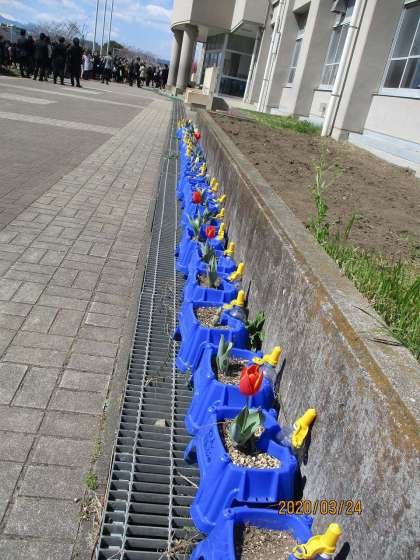 今日の写真は、チューリップと菜の花です。チューリップはもう花が咲きました。6年生を暖かく見送っているようでした。菜の花もぐんぐん育っています。春に黄色い花でいっぱいになるのが楽しみですね。