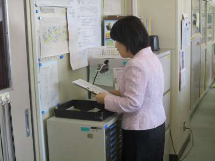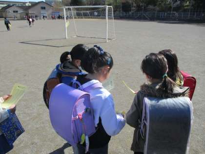 昨日は始業式。小サッカーゴール前でクラス分け名簿をもらうと、みんな真剣な表情で自分の名前を探していました。